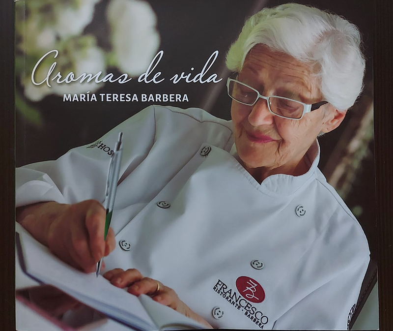 Sabores, tradición, esfuerzo y sueños se suceden por las 130 páginas del libro “Aromas de Vida”, escrito por María Teresa Barbera, cuidadosamente ilustradas con fotos de familia y otras imagenes, que se mezclan con anécdotas, poesías, recuerdos de viajes y mención de visitas destacadas que compartieron las mesas de sus restaurantes -como Brad Pitt, Raúl Alfonsín, Adolfo Bioy Casares, Quino, Joan Manuel Serrat, Norma Aleandro, Gustavo Cerati-. “Lo que hoy me emociona profundamente es encontrarme con los clientes que siguen fieles a nosotros, muchos de los cuales ya nos visitan acompañados de nietos y bisnietos”, agradece su autora desde el prólogo de la autobiografía que comienza con sus primeros años en Italia -nació en Roma a pocas cuadras del Vaticano- y sus vívidos recuerdos sobre la cruda Guerra Mundial que se desató en 1939, cuando tenía casi 5 años. También relata su llegada a la Argentina, en 1948, y su desembarco en Mendoza, ciudad donde los Barbera se transformaron en un emblema de la gastronomía, y María Teresa, en una de las chefs más destacadas de la región. Los primeros pasos de la Nonna Fernanda, es decir Fernanda Torresi de Corradini, madre de María Teresa, y la fundación de su pequeño restaurante “La Marchigiana” fueron fundamentales para la construcción de la empresa familiar, que ya lleva su cuarta generación abocada al negocio y es sinónimo de inversión, trabajo y responsabilidad social empresaria al servicio de la ciudad y su comunidad. El libro termina con un plus, un compilado de poesías que María Teresa “escribía en su mente mientras cocinaba y luego por las noches trataba de plasmar en papel”.