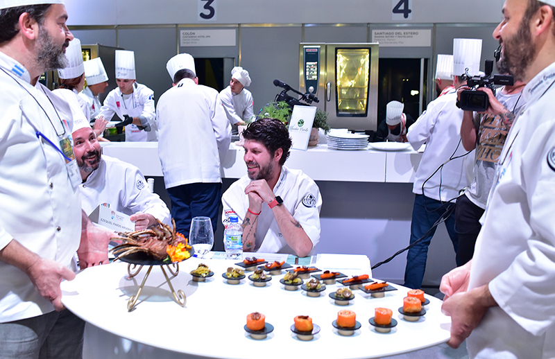 En la foto, Paulo Airaudo, Jurado de Honor, en la Gran Final del Torneo Federal de Chefs de FEHGRA 2019, junto a Jurados y Cocineros locales.