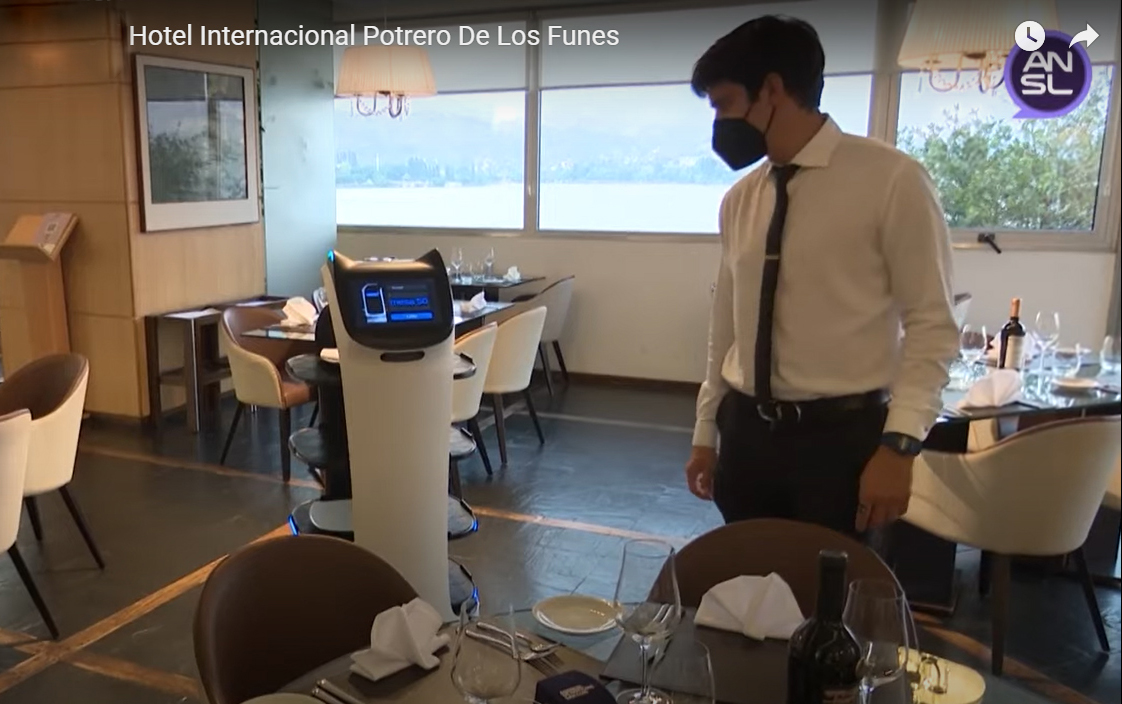 El Hotel Internacional Potrero de los Funes incorporó un robot autónomo de asistencia a los mozos, que es de origen chino. El gerente del establecimiento Leonardo Agnesi, quien es el tesorero de la Filial FEHGRA San Luis, dice: “Es una herramienta más para que los camareros puedan pasar más tiempo dedicados a atender lo que necesitan nuestros huéspedes”, y explica que, diseñado para asistir a los mozos, el robot hace un servicio de delivery con entrega de platos a las mesas en el restaurante. Agrega: “Hace tiempo que estábamos tratando de incorporar algo de robótica al hotel. Es muy novedoso, este robot es lo más avanzado de estas características. Tiene sensores que hacen un mapeo 3D y tiene una ruta prestablecida con los puntos de arribo. El acarreo de platos lo hace el robot. Estamos acomodando nuestro servicio a la nueva herramienta”. Puesto en funcionamiento recientemente, ya están proyectando sumar más tecnología: “Para más adelante estamos pensando incorporar inteligencia artificial, es decir, que uno pueda interactuar en tiempo real con el robot en la recepción, por ejemplo, para obtener información”, agrega.