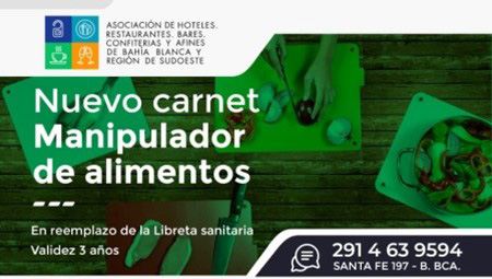 A efectos de poder cumplir con la normativa que establece la implementación del art. 21 del Código Alimentario Argentino que regula el Carnet de Manipulador de Alimentos, la Filial gestionó la realización del curso habilitante para la obtención del respectivo carnet. Informan que el 30 de abril de 2019 se publicó en el Boletín Oficial la Resolución Conjunta 12/2019 que entra en vigencia a partir del día siguiente de su publicación, la Comisión Nacional de Alimentos en el Acta 127 acordó incorporar un plazo de adecuación a dicha modificación del Artículo 21 del C.A.A. referido al reemplazo de la “Libreta Sanitaria” por el “Carnet de Manipulador de Alimentos”. Por ello las autoridades sanitarias competentes dispondrán de 365 corridos para organizarse y arbitrar los medios necesarios para adecuar los recursos económicos y humanos.