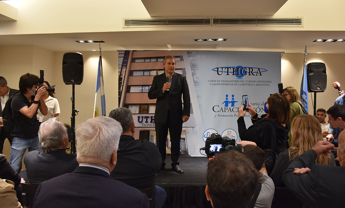 El acto fue encabezado por el secretario general de UTHGRA Nacional, José Luis Barrionuevo, y al secretario de Capacitación y Formación Profesional de UTHGRA, Argentino “Tito” Geneiro, miembros de la Comisión, secretarios generales e integrantes de las diferentes seccionales, autoridades del Ministerio de Educación de CABA, del Ministerio de Trabajo, Empleo y Seguridad Social de la Nación y de CABA.