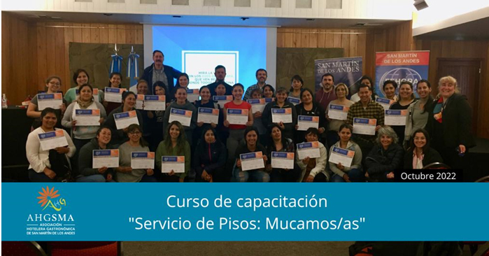 El 25 y 26 de octubre, la Asociación Hotelera Gastronómica de San Martín de los Andes dictó dos cursos de capacitación para personal de establecimientos que integran la entidad. El acto de cierre estuvo a cargo del presidente y del vicepresidente de la Filial, Agustín Roca y Gustavo Fernández Capiet, quien es secretario de FEHGRA, entre otras autoridades.