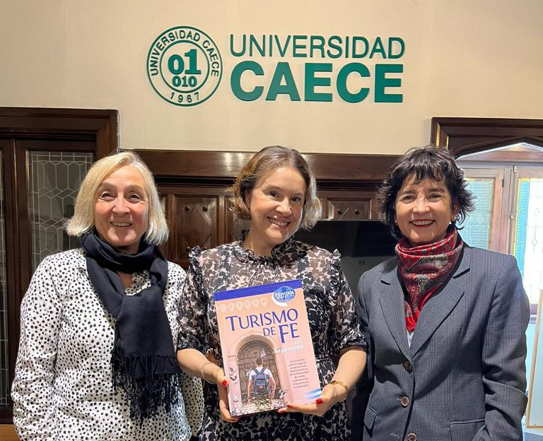 Las especialistas Silvia Cerchiara y María Alejandra Soldavini, a cargo de la elaboración de contenidos del libro, fueron recibidas por la vicerrectora de la Universidad CAECE de Mar del Plata, Marcela Luján.