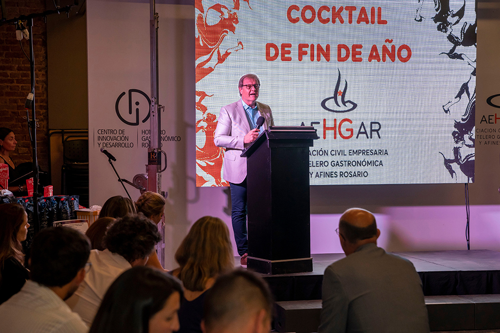 El martes 6 de diciembre las autoridades de la Asociación Civil Empresaria Hotelero Gastronómica y Afines Rosario (AEHGAR) invitaron al tradicional encuentro para despedir el año a sus asociados, a referentes de cámaras relacionadas, proveedores, profesionales de la actividad, funcionarios locales y provinciales y público vinculado. El evento se llevó a cabo en el Centro de Innovación y Desarrollo Hotelero Gastronómico Rosario (CID). La apertura estuvo fue encabezado por el presidente de AEHGAR, Carlos Mellano; el tesorero y coordinador de la Cámara Hotelera de la institución, Damián Auzunbud; y el secretario de Turismo de la Provincia de Santa Fe, Alejandro Grandinetti. En el acto, la Asociación presentó un resumen de la gestión 2022 y un breve panorama de los desafíos que tendrá la actividad el año entrante. Estuvo presente el vicepresidente de FEHGRA, Claudio Aguilar.