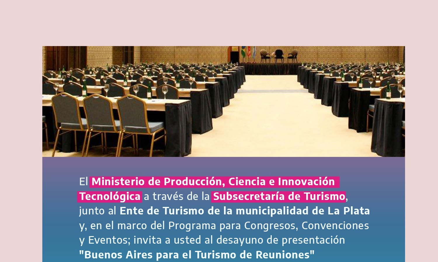 El Ministerio de Producción, Ciencia e Innovación Tecnológica bonaerense, a través de la Subsecretaría de Turismo, junto al Ente Municipal para la Actividad Turística (EMATUR) de La Plata, realizó un desayuno de presentación del programa “Buenos Aires para el Turismo de Reuniones”, en el Hotel AMAU de la Universidad Nacional de La Plata.