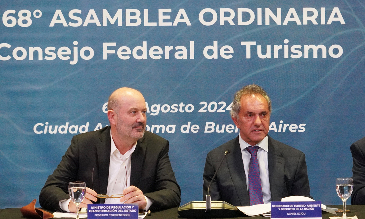 El secretario de Turismo, Deportes y Ambiente de la Nación, Daniel Scioli, participó el 6 de agosto de la 168ª Asamblea del Consejo Federal de Turismo, en la que el ministro de Desregulación y Transformación del Estado de la Nación, Federico Sturzenegger, subrayó la importancia de seguir avanzando en la desregulación del transporte en todas sus vías como punto clave para impulsar la actividad turística en todo el país.