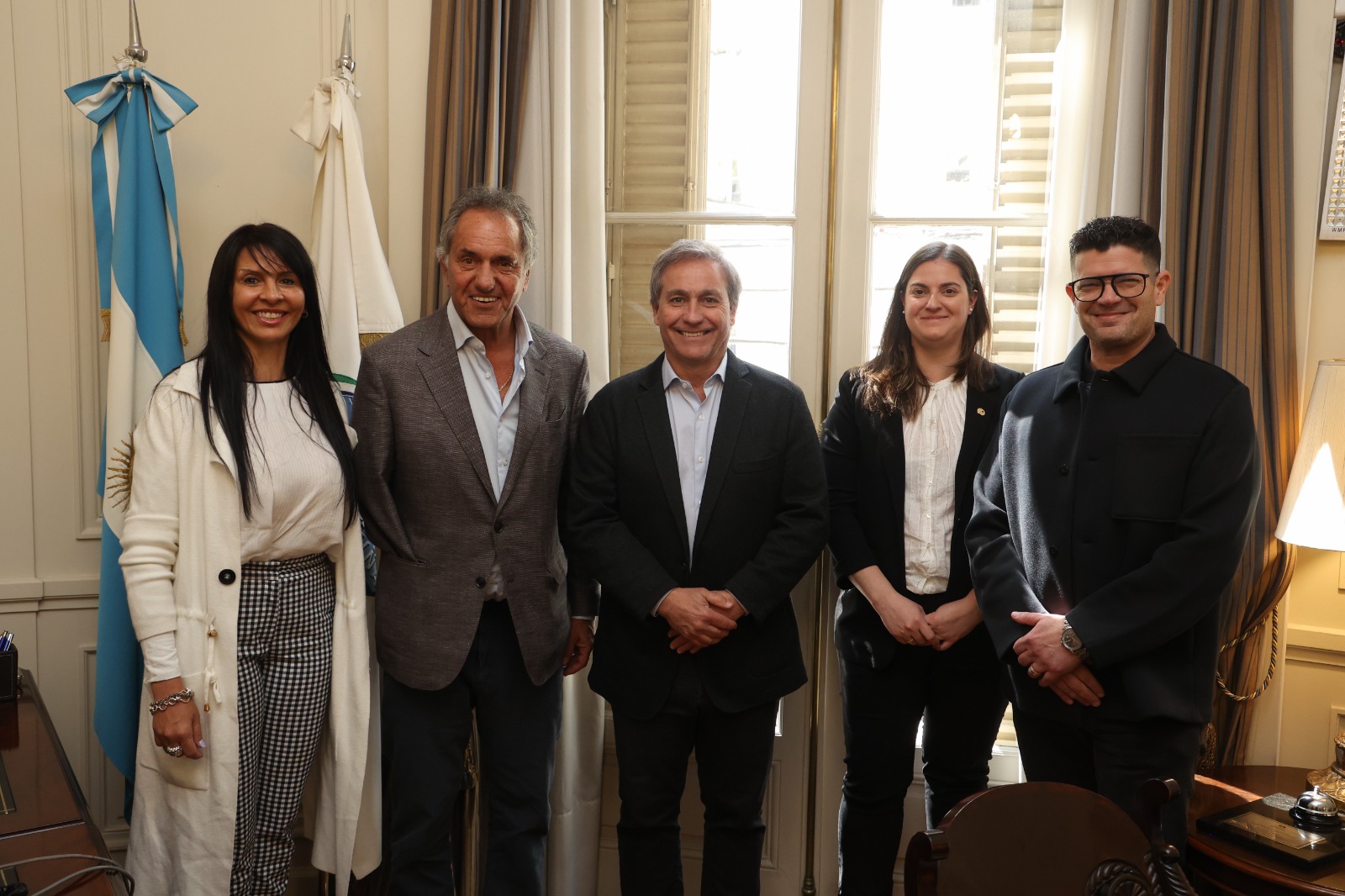 En la foto, de izquierda a derecha, Lorena Villaverde, Daniel Scioli, Fernando Desbots, Belén García Bertone y Lucino Nanni.