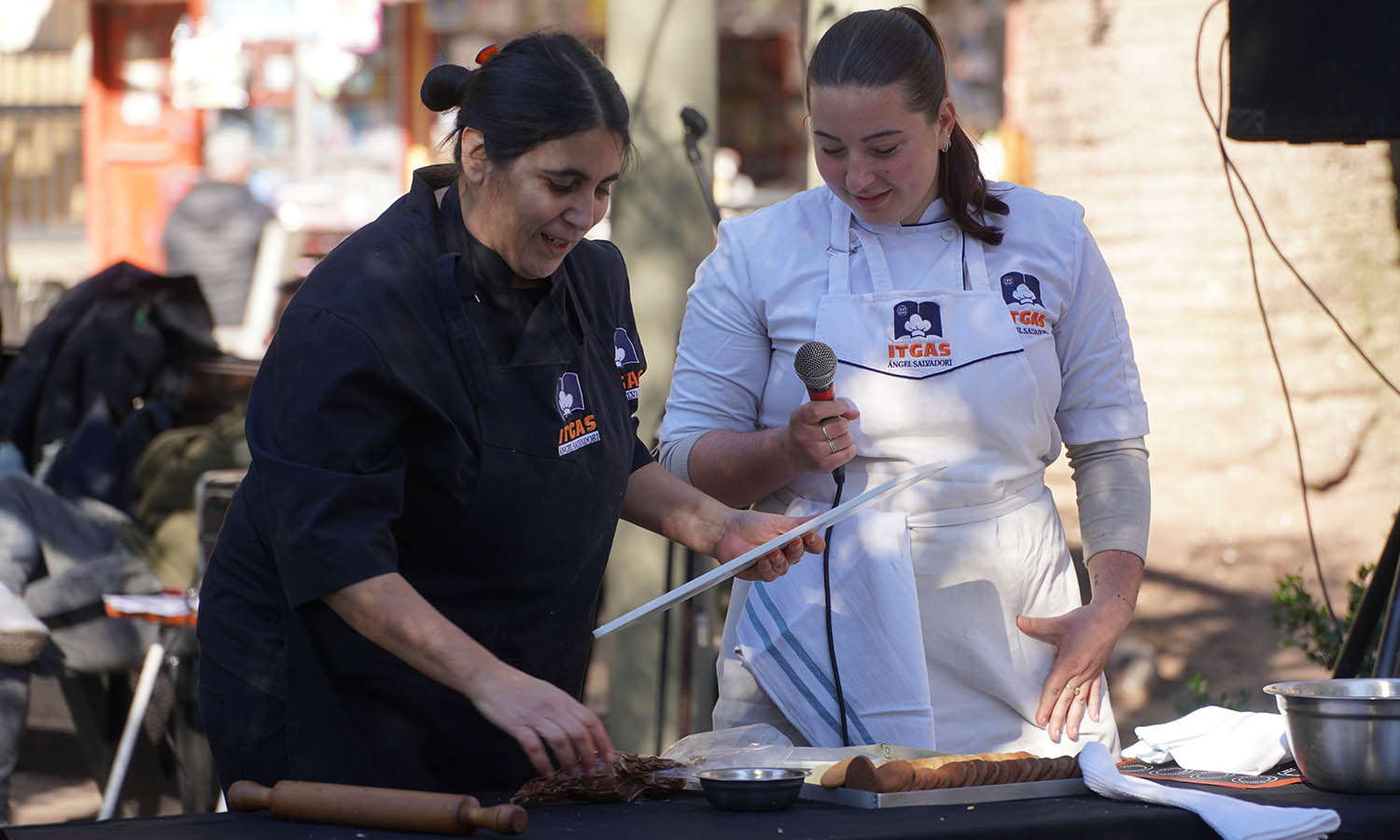 La clase magistral sobre producción de alfajores artesanales —uno de los productos emblema del festival— estuvo a cargo de la pastelera y docente Ana Pérez, junto a Agostina Siciliano, estudiante de la carrera Técnico Superior en Servicios Gastronómicos.