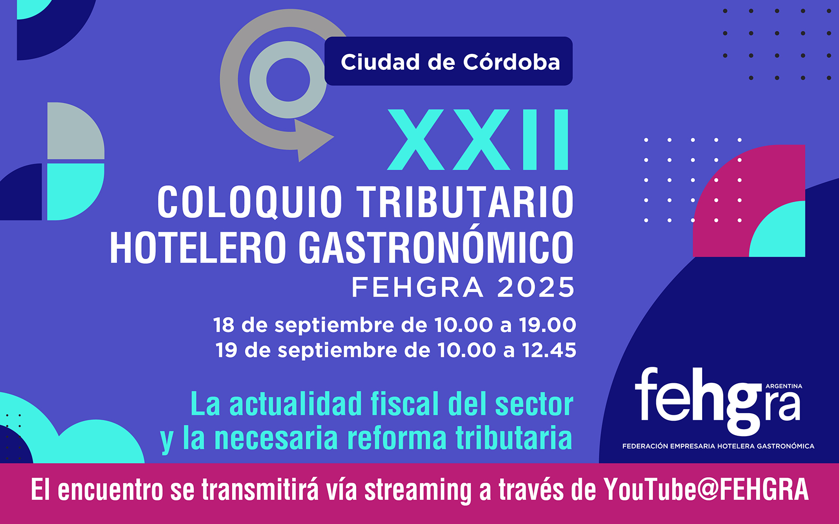 El encuentro reunirá a especialistas, asesores tributarios y dirigentes empresarios de todo el país para analizar la coyuntura fiscal del sector y debatir propuestas sobre temas tributarios, con el objetivo de contribuir al desarrollo sostenible de la hotelería y la gastronomía argentina. El encuentro se llevará a cabo el 18 y 19 de septiembre, en el Holiday Inn Córdoba.