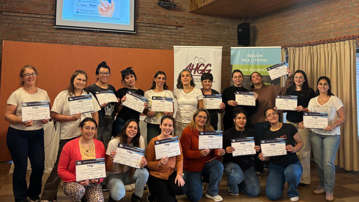 La AHGG llevó adelante el curso “Servicio de Pisos y Mucamas” en el complejo Faro del Lago, de la ciudad de Gualeguay, destinado a mandos gerencial, medio y operativo. La capacitación, de ocho horas de duración, se desarrolló el miércoles 17 de septiembre y estuvo a cargo del Departamento de Capacitación y Formación Profesional de FEHGRA.