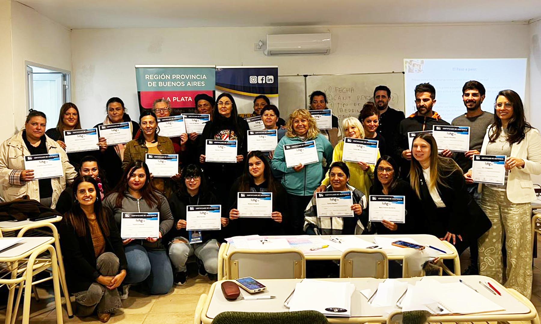 Durante el cierre se realizó la entrega de certificados, con la presencia de Jenifer Mella, directora de Turismo de Carmen de Areco; y por parte de AEHG La Plata, María Celeste Ortega, secretaria de Presidencia, y Agustina D’Angelo, asistente de Presidencia.
